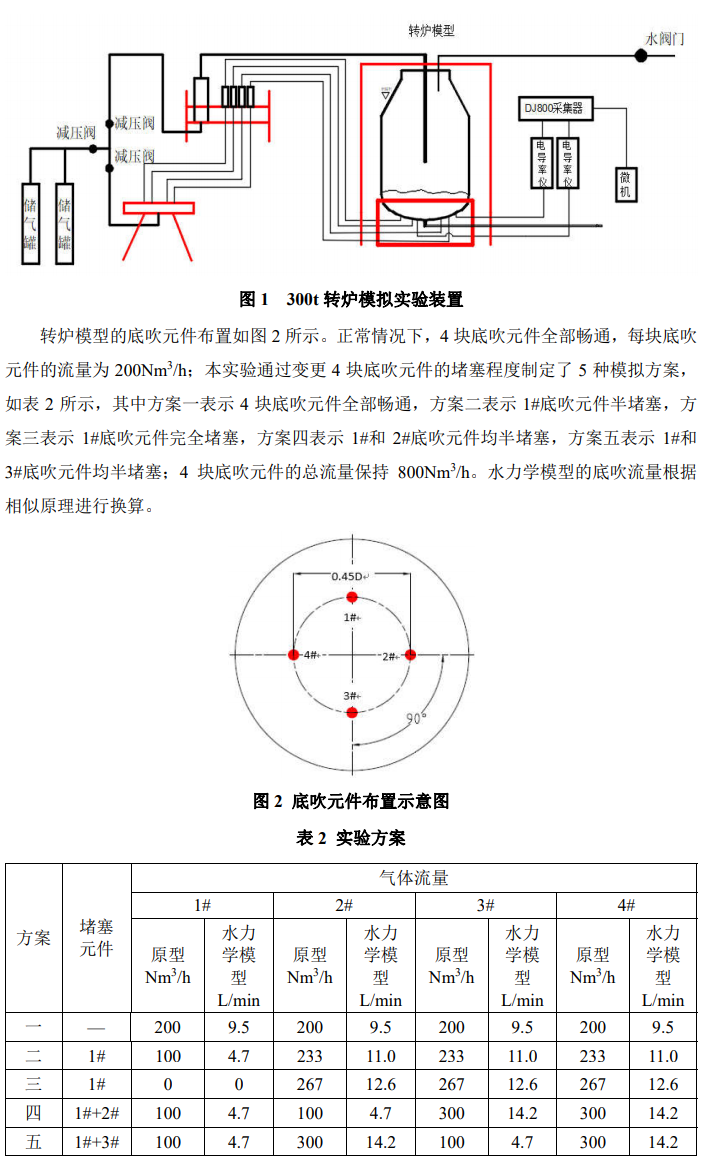1、水力学模拟实验过程中,在转炉模型底部非对称位置布置两个用于检测溶液电导率变化的DJS-10C电导率电极。