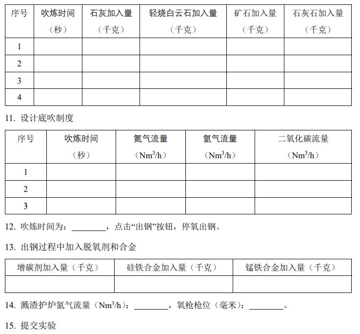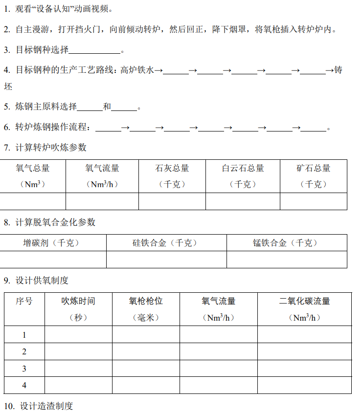 要求学生完成典型目标钢种和典型原料条件的工艺参数设计计算,编制合理的供